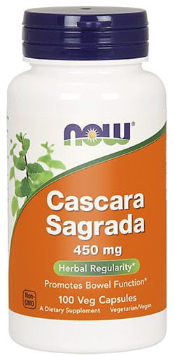 Cascara Sagrada 100 kapsułek NOW - suplement diety stworzony na bazie sproszkowanej kory kruszyny (szaklaka) amerykańskiego.
