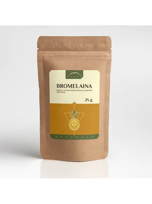 Nanga Bromelaina 25g - bromelaina to mieszanina enzymów proteolitycznych (trawiących białko) znajdująca się w dużych ilościach owocu i łodydze ananasa. Wytwarzanie enzymów zdolnych do trawienia białka jest strategią obronną. Ma to na celu ochronę rośliny m.in. przed rozwijaniem się larw owadów dla których bromelaina jest toksyczna.