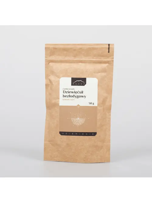 Nanga Dziewięćsił bezłodygowy cięty 50g Carlina acaulisPobudza detoks organizmu. Przyspiesza trawienie, stymulując wydzielanie soków trawiennych i żółci.