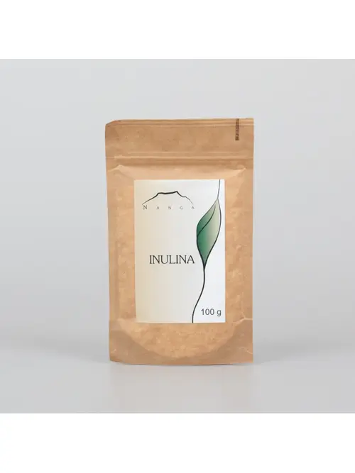 Nanga Inulina 100g - Inulina – błonnik pokarmowy rozpuszczalny w wodzie, występujący w niektórych owocach i warzywach. Z punktu widzenia chemicznego jest to wielocukier składający się z wielu cząsteczek fruktozy oraz jednej cząsteczki glukozy.
