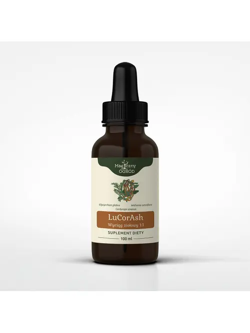 Lucorash to wyciąg ziołowy 1:1, który łączy siłę trzech surowców: lukrecji (lu), cordycepsa (cor) i ashwagandy (ash).