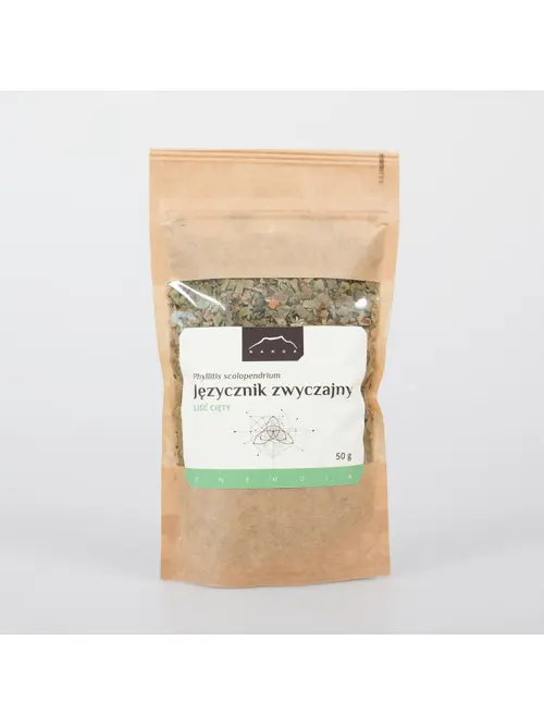 Nanga Nanga Języcznik zwyczajny liść 50g Phyllitis scolopendrium – zwany potocznie językiem jelenim, gatunek paproci wytwarzającej długie, delikatnie pofalowane liście o ostrych końcach.