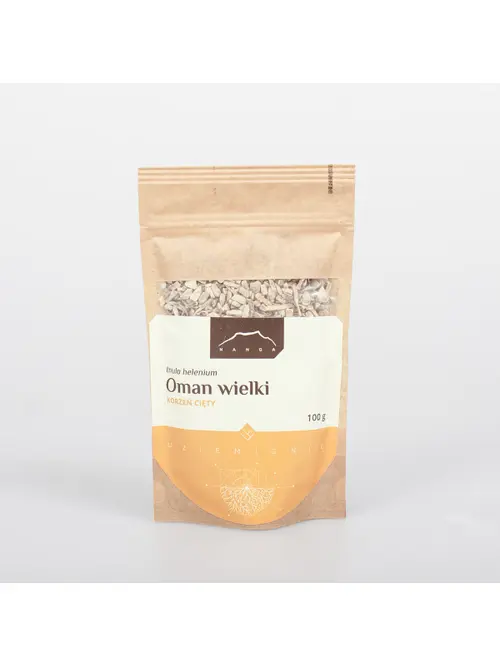 Oman wielki (Inula helenium) – roślina z rodziny astrowatych, osiągająca 1-2 metry wysokości, wytwarzająca lancetowate liście oraz duże, żółte koszyczki kwiatowe. Naturalnie występuje w Europie i Azji Zachodniej. Surowcem zielarskim jest korzeń, zawierający szereg składników aktywnych, takich jak: inulina (ok. 40%), olejki eteryczne, śluzy, fitosterole, witaminę E i sole mineralne. W czasach antycznych korzeń omanu stanowił ważny element medycyny ludowej, a także był uwielbianym przysmakiem na rzymskich dworach. Zasmażano go razem z cukrem, a w późniejszym okresie przygotowywano z niego zdrowotne wino. Oman wzmacnia mechanizmy obronne skierowane wobec bakterii, wirusów, grzybów i pasożytów oraz wykazuje działanie wykrztuśne. Ponadto pobudza trawienie ze względu na słodko-gorzki smak. Jednak najważniejsza moc tego zioła skierowana jest na zdrowie układu oddechowego. Przy regularnym stosowaniu korzeń omanu ułatwia oddychanie, pomaga oczyścić drogi oddechowe i odetchnąć pełną piersią. Świetnie sprawdzi się na wędrówkach wysokogórskich, przy niedrożności dróg oddechowych, w przypadku uczucia ciężkości po posiłku oraz w okresie obniżonej odporności.