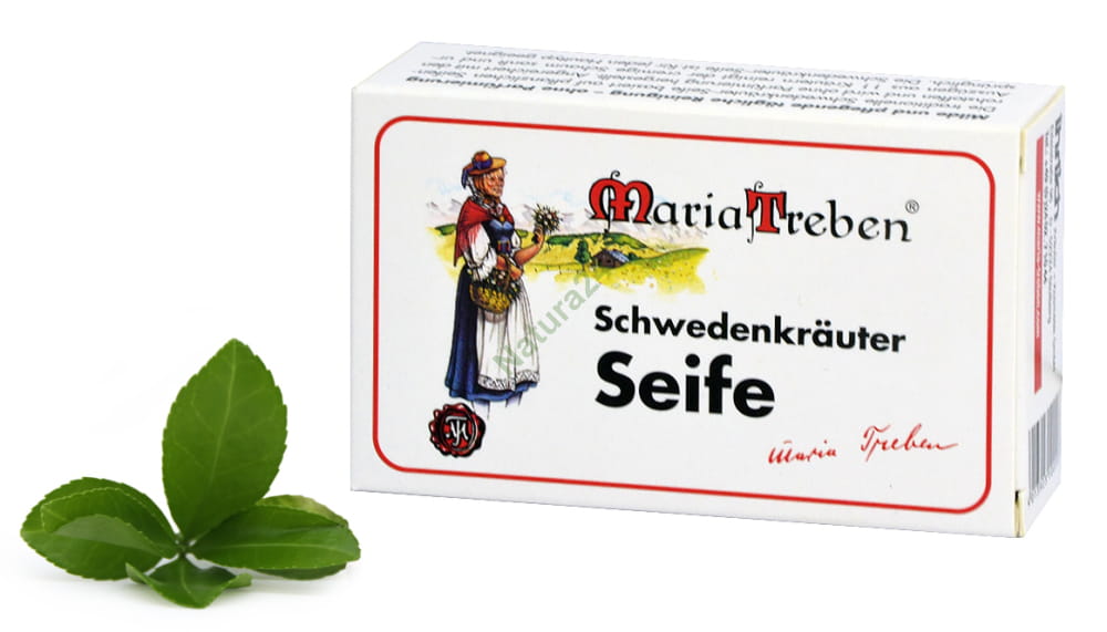 Zioła szwedzkie - mydło 100g łagodne i przyjazne dla skóry. Bez barwników i aromatów. Wyprodukowane zgodnie z recepturą Marii Treben, na bazie ziół szwedzkich. Mydło jest polecane przede wszystkim do pielęgnacji suchej, wrażliwej skóry skłonnej do podrażnień i wyprysków oraz do codziennej pielęgnacji skóry. Jest bardzo wydajne.